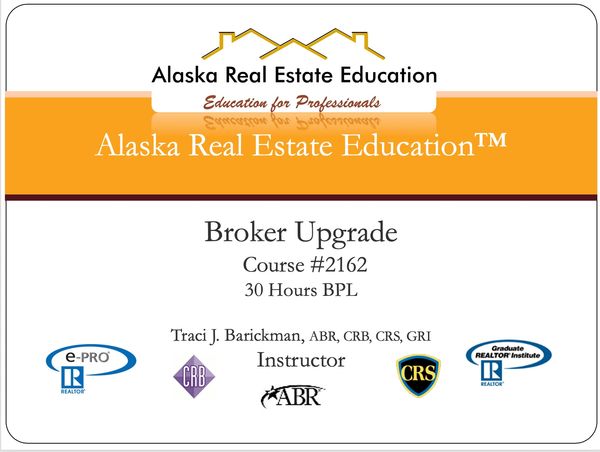 This course is offered online/correspondence and will meet the requirements for education set forth by the Alaska Real Estate Statutes & Regulations.